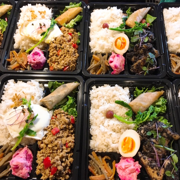 - 奄美の黒胡麻チキン弁当(鶏胸肉をたっぷりの黒胡麻、味噌、黒糖、生姜などに漬け込んで、オーブンで焼き上げたもの)