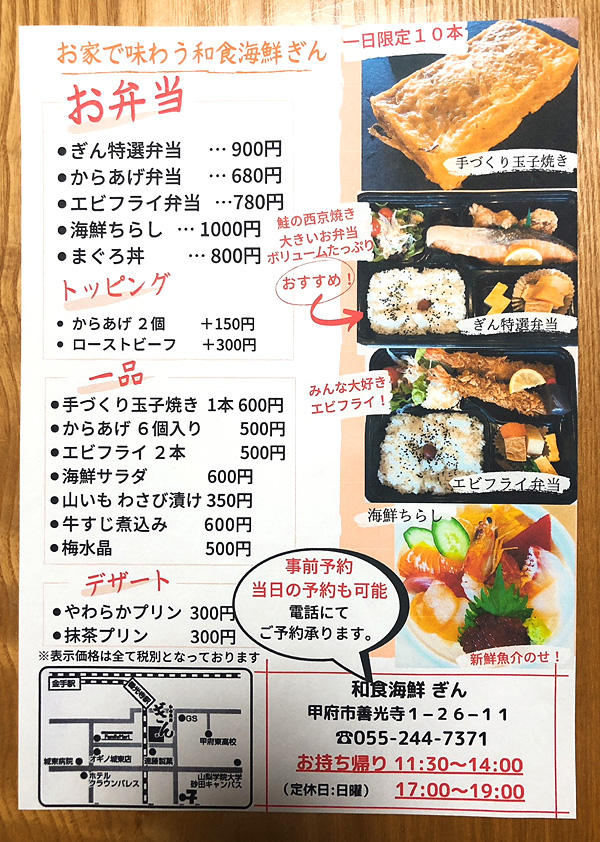 山梨県内のテイクアウト情報を随時掲載していきます。
